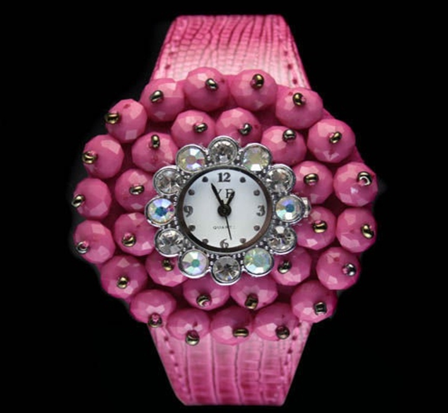 RELOGIO ROSA LUXUOSO COM PEDRAS BRILHANTES